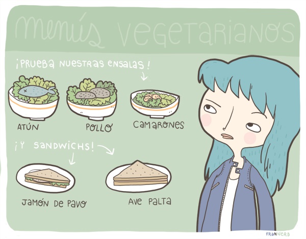 "yo creo en el bienestar animal, pero todo el sistema funciona de manera carnívora, y ser vegetariana es luchar siempre contra la corriente" .